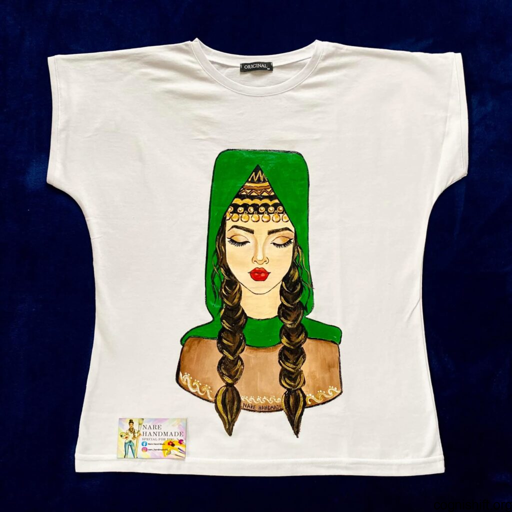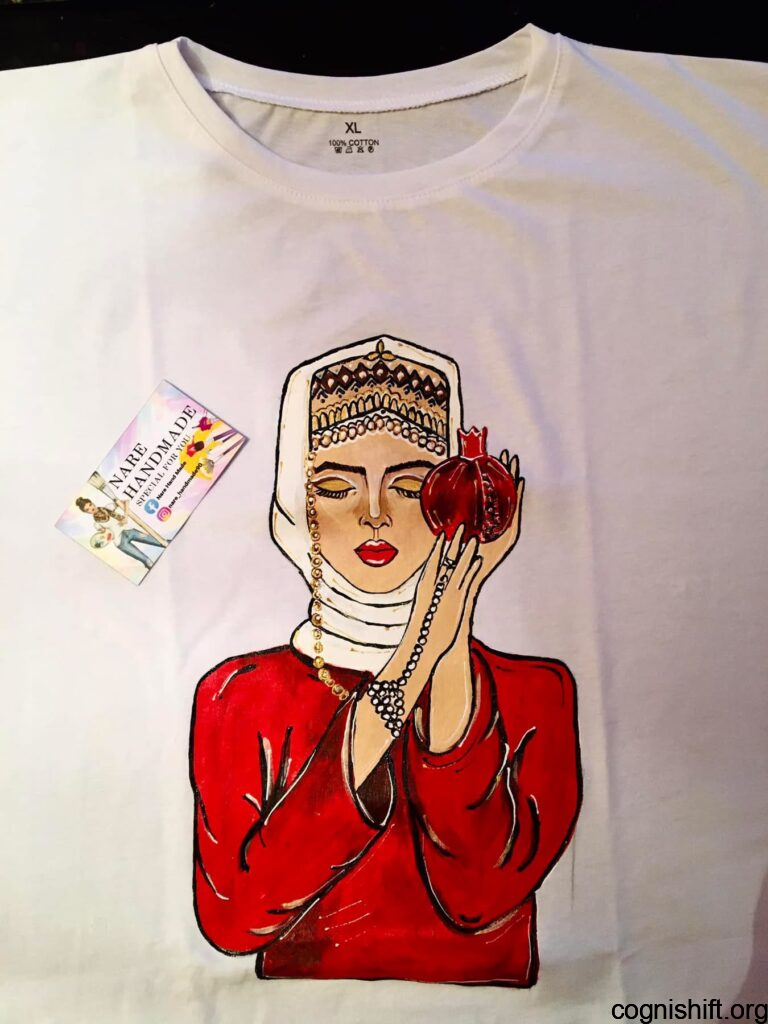 In NAREHANDMADE, symbols of Armenian culture are reborn on shirts hand-painted by me — khachkars, the Armenian alphabet, traditional costume details, and landscapes.